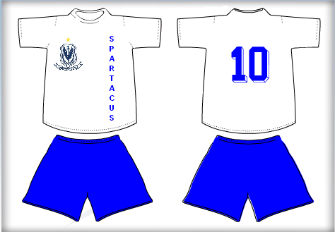 Surgiu, então, o primeiro uniforme: camisetas brancas estampando, na vertical, do lado esquerdo do peito, em cores azuis, o nome SPARTACUS F.S., tendo à direita, no peito, o distintivo; calções azuis e meias azuis. Quatorze jogos iguais, registra-se que, no Spartacus, desde a sua fundação, nunca houve divisão entre 1º ( primeiro) e 2º (segundo) quadros; todos são, igualmente treinados e preparados para desenvolverem o melhor de suas qualidades e aptidões para o futsal.